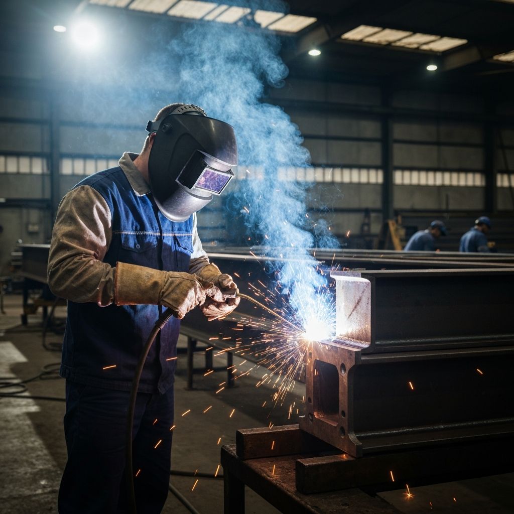 Uluslararası standartlarda (EN 1090-2), yüksek hassasiyetli CNC kesim ve sertifikalı kaynak süreçleriyle nitelikli çelik yapı elemanlarının profesyonel imalatı.